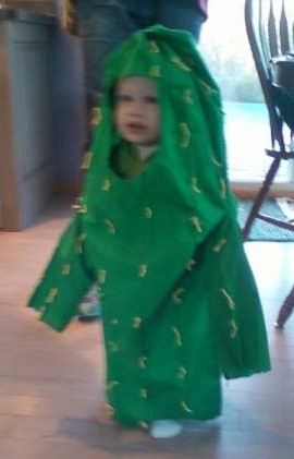 Last month when I went home I was there over Halloween and got to go trick or treating with my niece and nephews. I brought Jax the cutest Halloween costume ever- a suagaro cactus made by Sandi. I got the idea from Matt who was a sugargo when he was little. The body was made with green cloth and had ridges and the needles were made of yellow yarn- so cute!